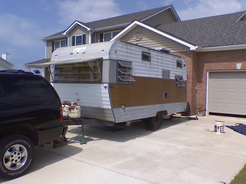 We wanted something we could pay cash for so I scoured Craigslist and we found a 1970 Fan Lee Liner Travel Trailer (15′) for sale in Michigan. Drove home with no chains, mind you. The angels were carrying us home safely for sure. We had no clue what we were doing, people! That Fan was ugly on the outside but original on the inside and had only sat at the couple’s seasonal campsite. We did a lot of work to that little thing and the older boys still stayed in a tent. After all of our work on it, it tripled in value and we sold it to someone in SEATTLE, of all places!! (Remember, we live in Indiana. More info and the reveal later.)