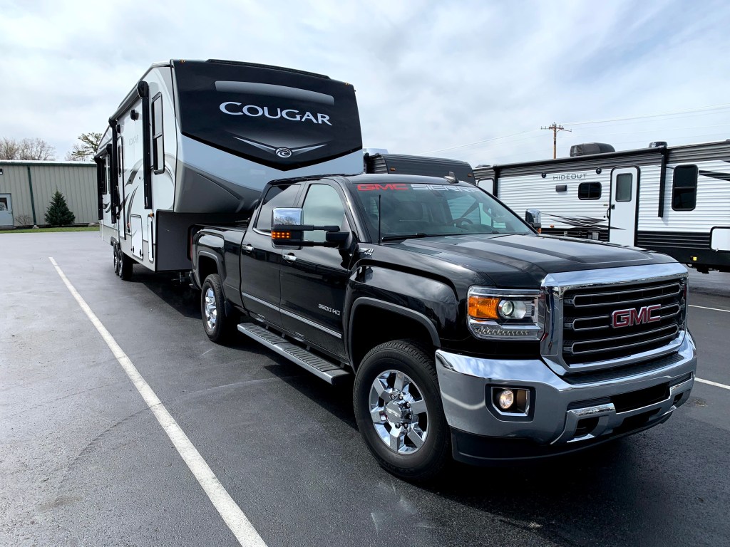 So why on earth are we keeping a BUNK HOUSE for one time a year? Teenagers leave the nest and are too busy for camping. So now we are left with the youngest and the dog and even now the youngest is too busy sometimes. So we caved and traded in the Passport on a “Couple’s Coach” like retired folk. Ha-ha. (No offense.) We had been looking at used fifth wheels for months at Walnut Ridge RV. Our salesman kept saying we should look at new (likely because we were extremely picky!). Hence the 2021 Keystone Cougar 316RLS (GVWR=12,300 lbs.)–our first fifth wheel. Went in that day looking at used and came out with an offer on a new one. Are you seeing a pattern here? (We actually sold our 2500 Chevy Silverado to a local dealer so we could buy a 1 ton GMC Sierra to have enough payload for any fifth wheel we were looking at. More on that later.) We love the new Cougar with white cabinets even–I would have never believed it! Two years ago I thought people with white cabinets were unrealistic or parking in a parking lot resort with no mud ever to grace their RV. I’ll save that rant for later.