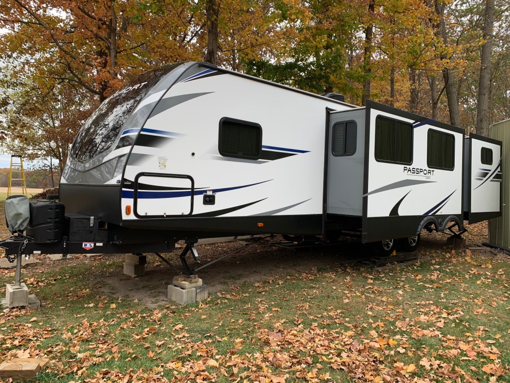 Six months later we couldn’t stop wishing we were camping and Jon’s hip was WAY better than it had been for decades. PTL! So we thought a bunkhouse with enough space for all our teens stuff (with an extra bath for our pre-teen daughter) might be the best option. We bought a 2019 Keystone Passport GT 3351BH (GVWR=9580 lbs.) from D & D RV Sales. We went wanting to look at their used ones they had rented out and he showed us the new one (for only $3K more!) and new style and we fell in love. This worked out really well for us and had enough space until we had 8 sleeping in it, then it was a bit tight. RV’s may say they sleep 10, but it means if you have a family of munchkins they will sleep 10. Don’t believe the numbers because the beds are never standard sizes. Teenagers are not munchkins nor are their friends. Their stuff (like guitars, 5 wardrobe changes, and drones) tends to take up more space as well. Ha-ha. Thankfully we only had to deal with this once per year when we camped with friends annually over the Fourth of July in Michigan. This TT was ridiculously LONG and I had to be very cautious about every site we picked.