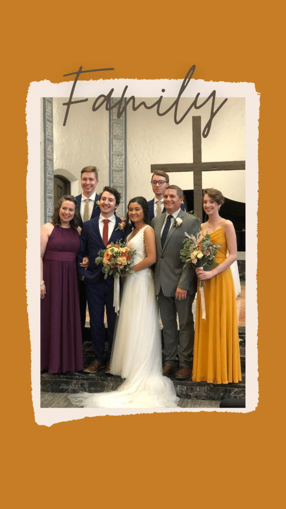 - There was a bridal shower for our future daughter-in-law. Our oldest son was married at the end of June to this gorgeous bride. It was a beautiful ceremony and reception!! I know the groom’s side is supposed to be easy but there’s still a lot to get done with the rehearsal dinner and preparation. All 4 of our children were in the wedding party and 5 of us needed alterations to our outfits so there was a lot of back and forth with that. Then all the girls have to work on hair and makeup. Of course we also had to spend time in Indy searching for a suit for the groom. The company the groomsmen ordered their suits from told our son his wouldn’t arrive until after the wedding date. Yikes! We found one that matched pretty well. Thankfully! Once they returned from their honeymoon we also hosted the gift opening since we’re halfway between the happy couple and her parents.