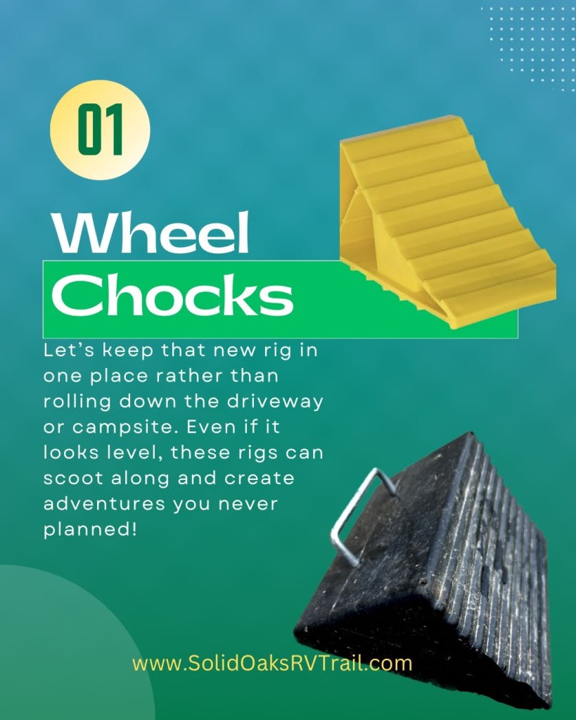 So you’ve been to the RV dealer or online and finally decided on that new or used rig that you can’t wait to get on the road? It’s SO exciting! Are you ready to take it home and park it or are you anxious to make due on that first-ever camping reservation? Take a look at these items below with links and see what you should have in your cart before (or immediately after) you sign on the dotted line and why. (If you are towing, be sure to get the appropriate-sized hitch for your rig and tow vehicle. We won’t go over that today.)